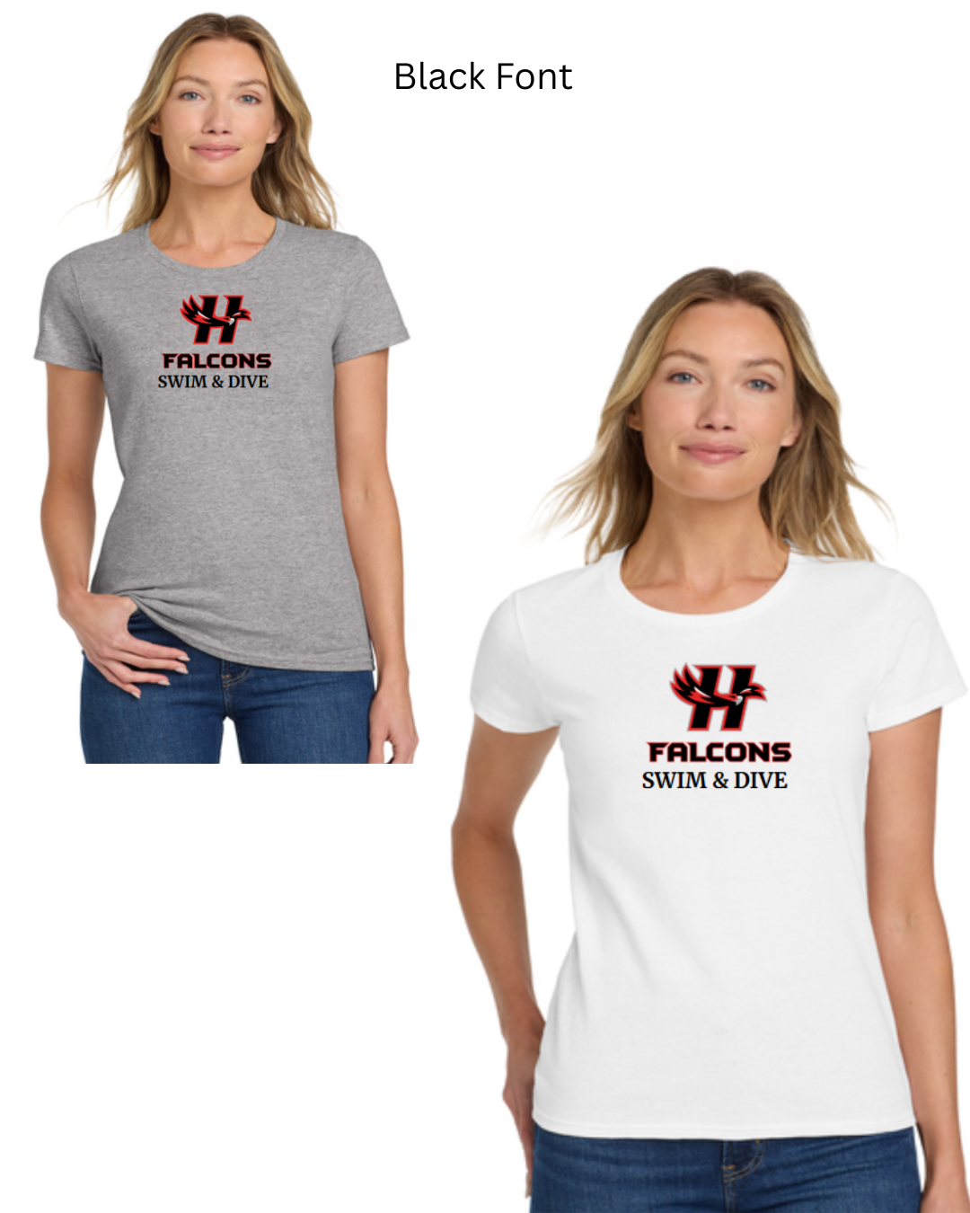 Falcons Swim & Dive Female Shirt Black Font